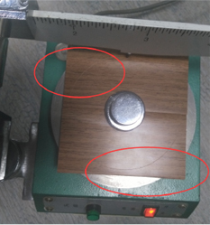 在1.5N的压力下,对 杜拉特(CPL)材质、PVC材质、油漆材质进行对比实验(转数均为2圈的表面效果)