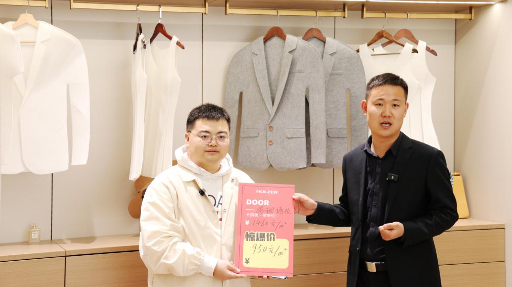 直播现场,霍尔茨总经理赵崇联第一时间为直播间的粉丝送出优惠福利,爆款木门、无醛墙板、全屋定制套餐等纷纷钜惠放送!更有总裁“放价”福利掀起抢购热潮,让消费者买得更放心。数据显示,此次直播累计观看超20W人次,正式打开“大品牌+大卖场”的营销新方式。