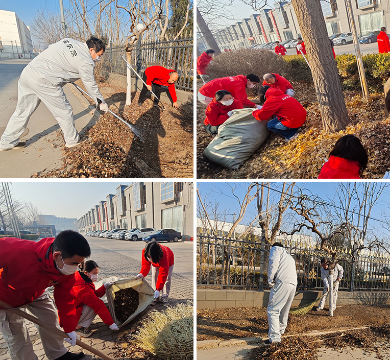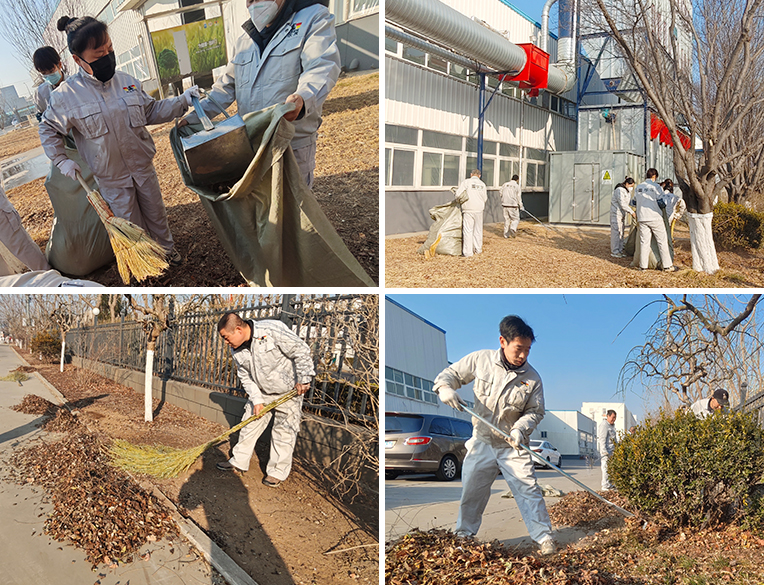 在清洁过程中,员工们发扬不怕脏、不怕累的精神,对卫生死角进行重点清理。大家齐心协力,利用各种工具,或弯腰俯身或几人协力,集中将绿化带落叶、残枝归拢装袋集中处理,让新萌芽的绿叶展露头角,使得厂区环境更加优美宜人,处处彰显着企业的生机与活力。