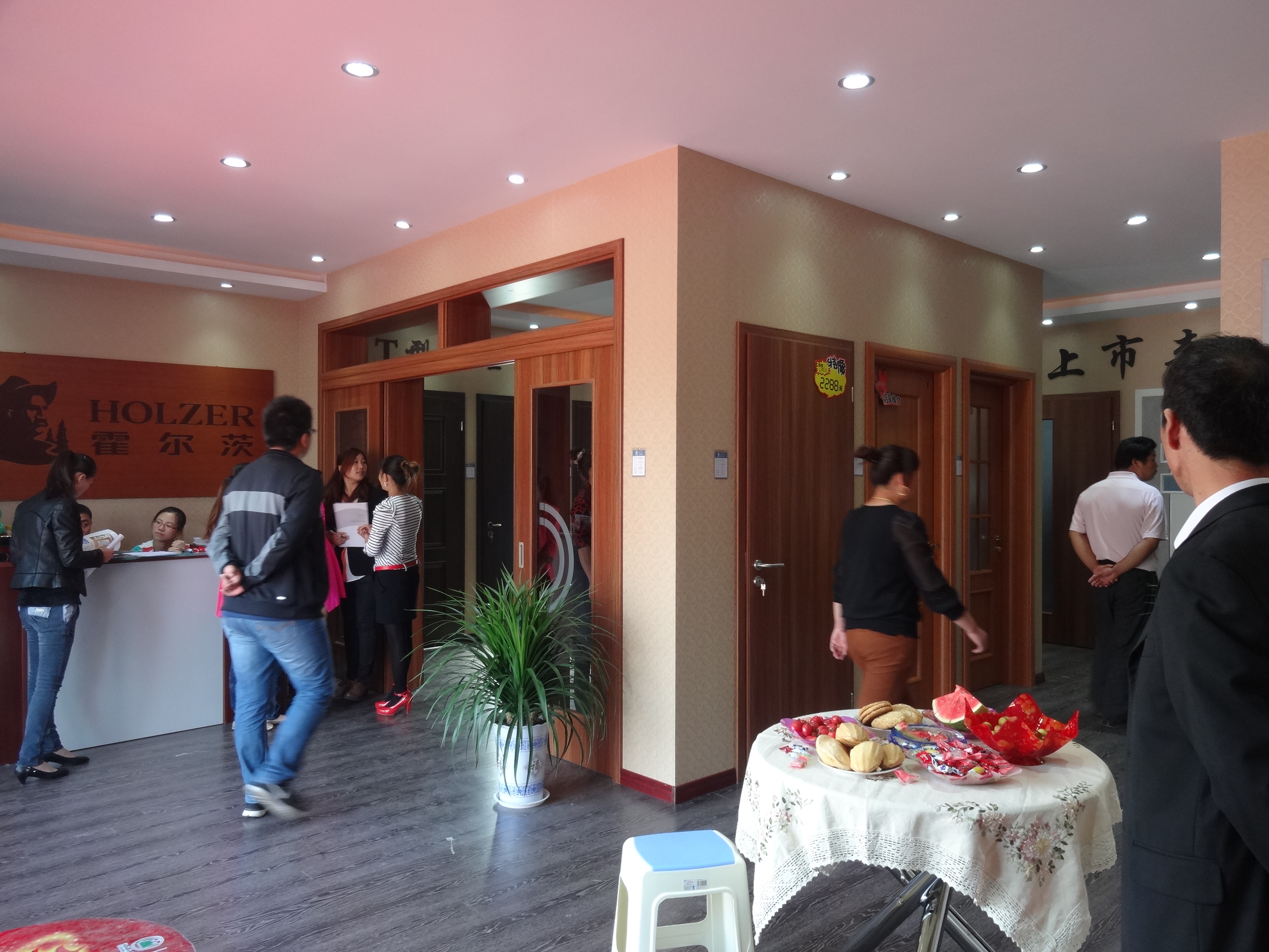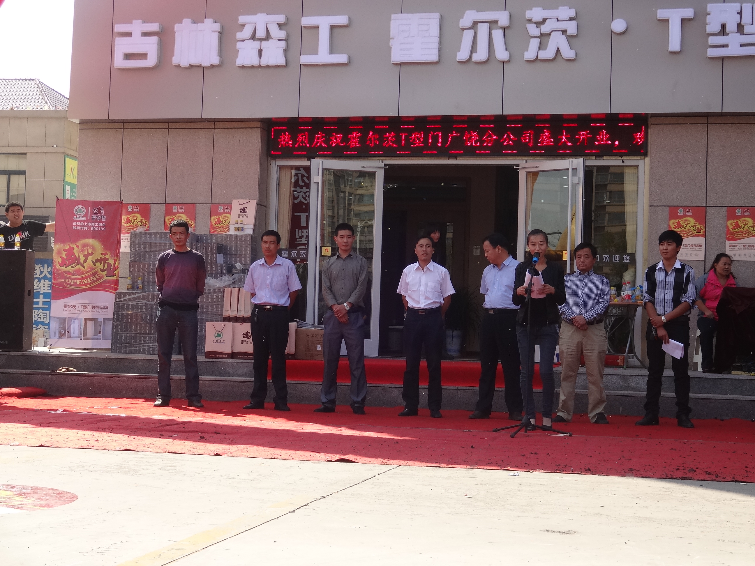 2013年9月26日,吉林森工霍尔茨广饶店面举行了盛大的开业典礼,开业活动现场,锣鼓喧天,气势恢宏,来宾在入场之初,便深深地感受到霍尔茨开业浓郁的喜庆欢乐气氛。 出席本次庆典活动的有公司区域经理及政府部门相关领导嘉宾,为了庆祝霍尔茨新店开业,公司区域经理亲临活动现场代表吉林森工霍尔茨全体员工做大会致辞,并参加剪彩仪式,开业庆典在激情澎湃的锣鼓表演中拉开帷幕。
