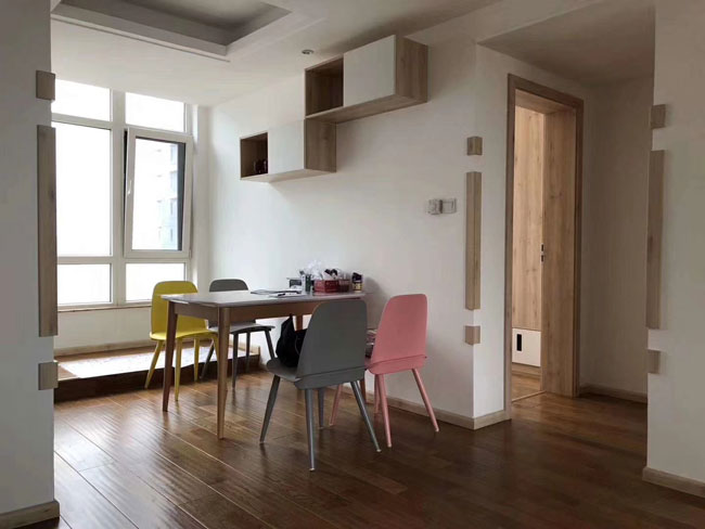 北欧风格在空间处理上讲究室内空间的宽敞、内外通透,并以落地窗、榻榻米等形式最大限度引入大自然的太阳光。空间的平面设计中,北欧风格也更追求流畅感:墙面、地面、顶棚以及家具陈设乃至灯具器皿等,均以简洁的造型、纯洁的质地、精细的工艺为其特征。北欧式的家装风格大都不喜欢有硬装隔断的功能区,半开放的厨房、酒吧,衣帽间和卧室相连,凸显空间大气的同时,也体现了浓浓的北欧风。