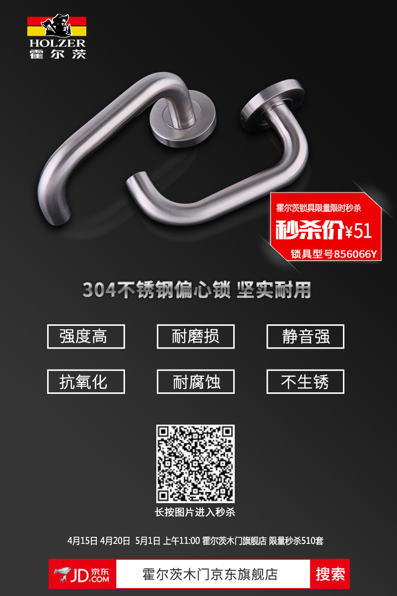 51元的整套锁具掀起了一阵全民疯抢的热潮,锁具外型时尚百搭,时间还未到,霍尔茨木门京东旗舰店上便有用户不断点开与客服人员对话的小窗,询问购买锁具的具体情况!操作的提示音不断传来,霍尔茨京东旗舰店的后台一片热火朝天。仅售510套的锁具,限时限量发放,厂家直出,实力保障,先到先得,还不快登录“霍尔茨木门京东旗舰店”,锁定4月20日和5月1日的超值锁具。