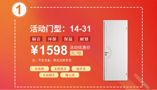 冰曲柳、逸界灰、曜石黑、水映枫木、水韵柳木,五种花色随意选择,型号为14-31的霍尔茨T型门,在此次活动中刚一开放购买通道,就有众多霍尔茨粉丝一拥而上,仅要1598元,便可购得品质有保障、外观高颜值的经典木门,不仅隔音保温,还耐刮擦,方便打理,环保性能优越。家中有小孩、老人,一扇霍尔茨木门的存在就更是必要,轻松高效将两个空间隔开,就算客厅的电视机如何吵闹,都不会影响到卧室里熟睡的家人。